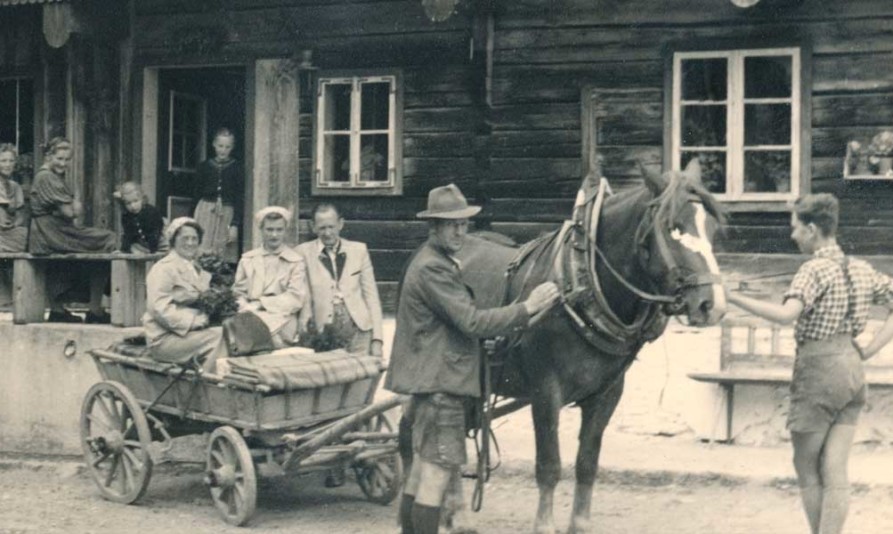 1956: The stable was extended inside and a semi-automatic drinking trough was installed for each animal. Grain and potatoes were grown in the fields. Manual work was gradually replaced by machines. They purchased a tractor. In the winter months they continued to spin wool and flax. Tourism received a boost.
