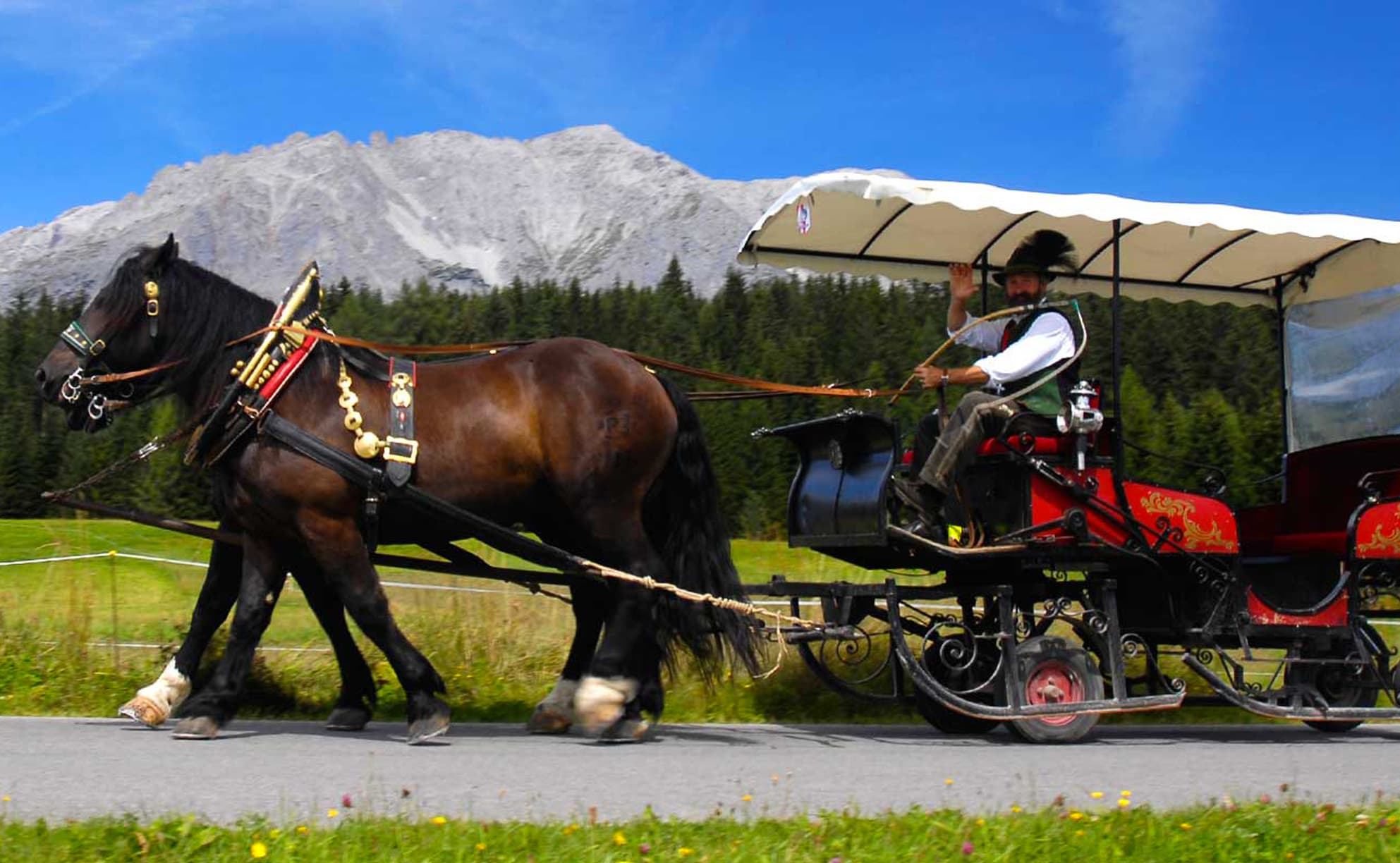 Explore the romantic winter scenery and the snowy woods of Ramsau during a horse-drawn sleigh ride. Wonderful moments will complete your winter holidays. In summer we offer an unforgettable experience of nature on our carriages.